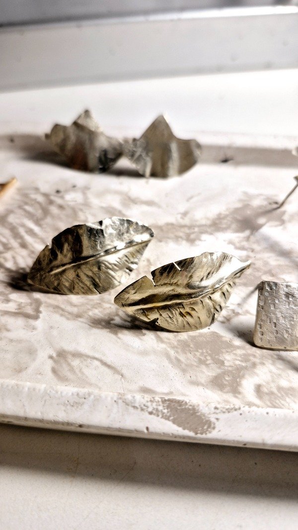 Se realizan a partir de una pieza de metal plana y lisa que se dobla, recoce y martilla varias veces hasta que se consigue la forma buscada.