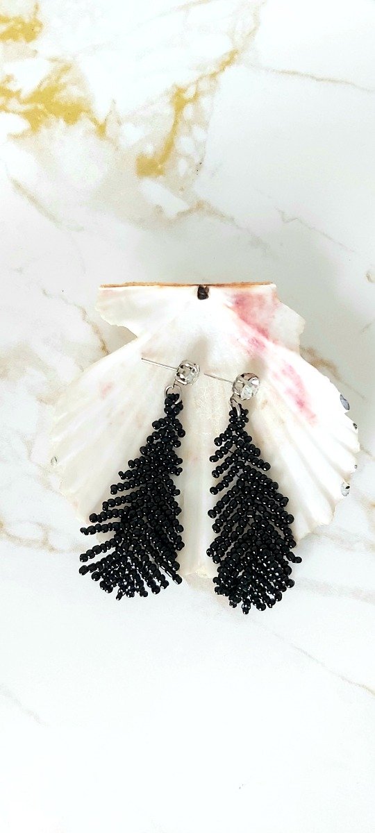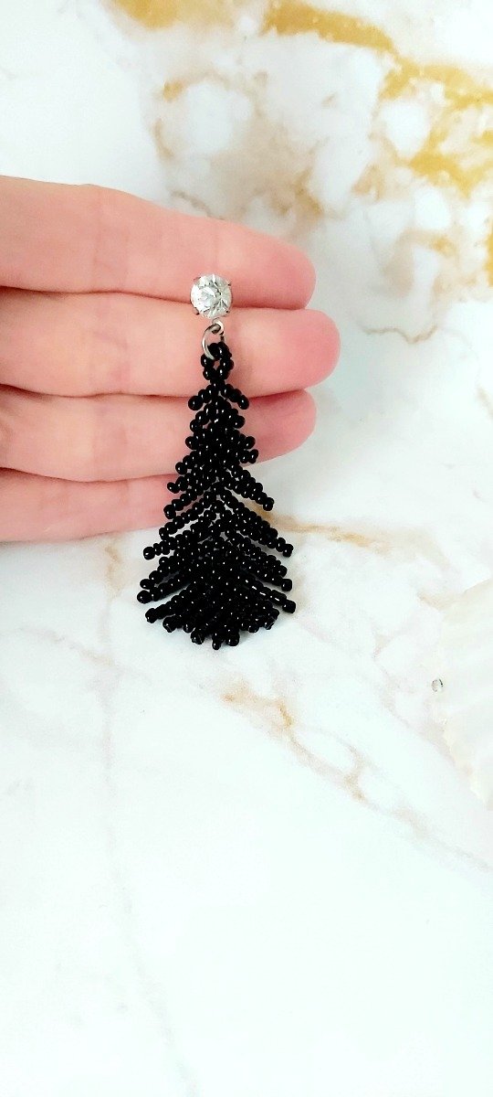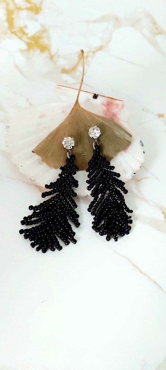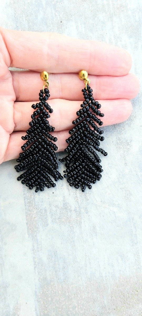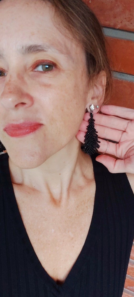 Aros confeccionados a mano con pequeñas mostacillas negras.