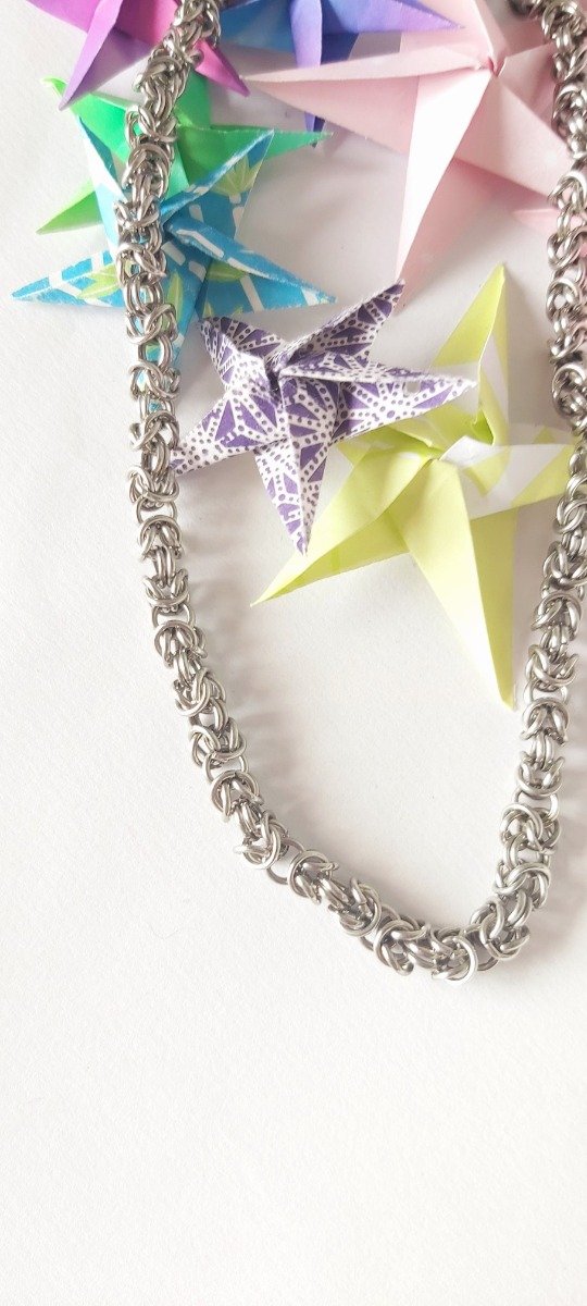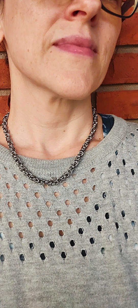 Collar hecho a mano en un punto muy original, para usar solo o con un dije que te represente.