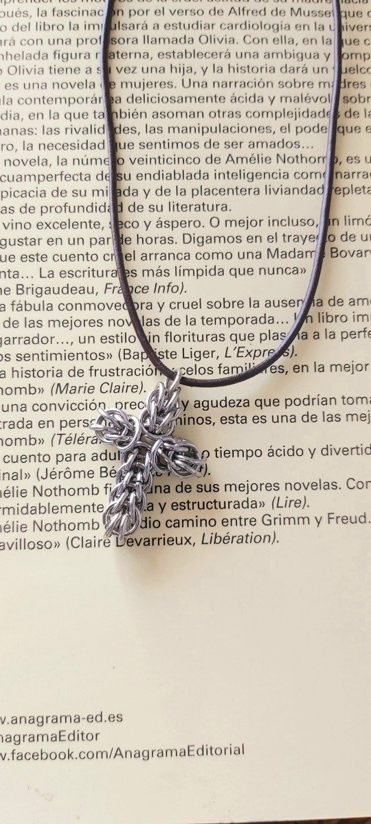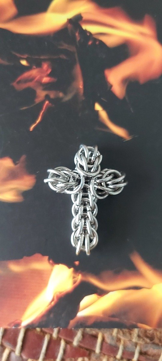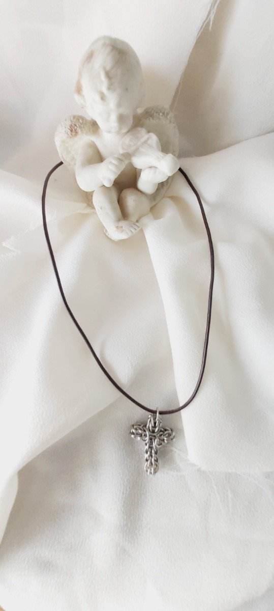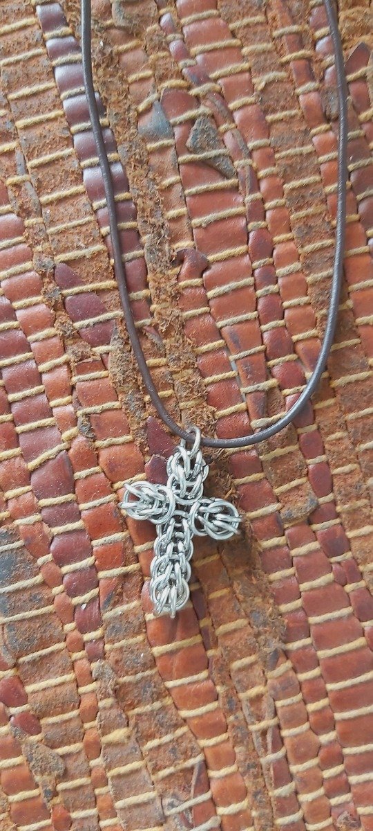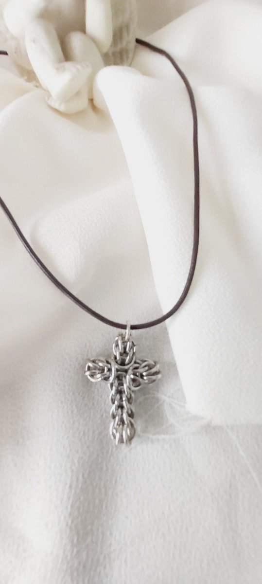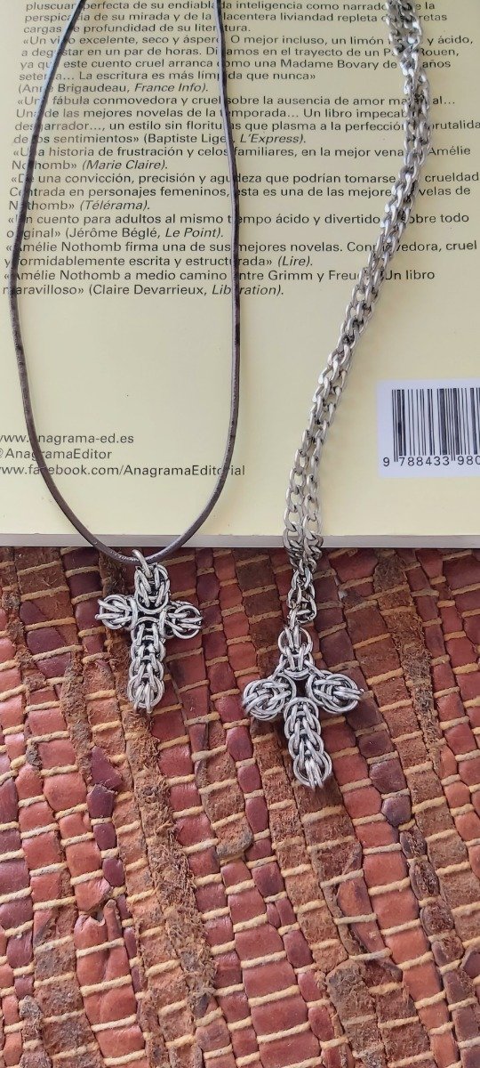 Collar con cruz artesanal. La cruz de hace en forma artesanal, a mano, mediante la antigua técnica de tejido medieval.