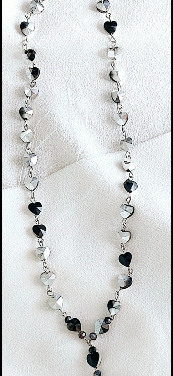 El collar termina con 2 corazones que caen sobre el pecho como un dije.