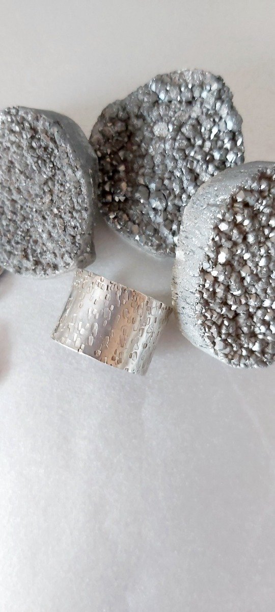 Hecho a mano, tiene una textura que lo hace brillar y es muy original. Tiene 1 cm de ancho, se puede hacer mas fino o mas grueso a pedido.