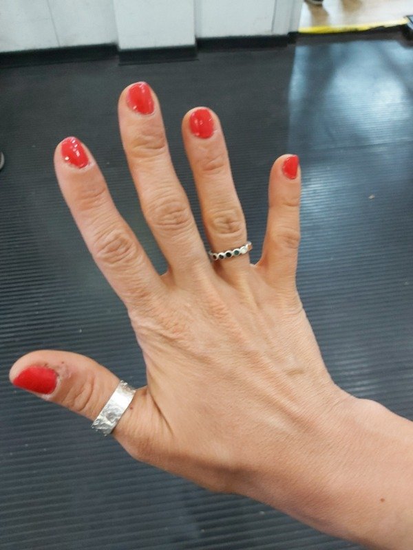Como saber tu medida de anillo. Enrosca una tira de papel o cinta de 7 cm de largo alrededor del dedo y marca donde se juntan, luego medi la tira con una regla. Esa medida me la pasas luego de la compra para ajustar el anillo a tu medida.