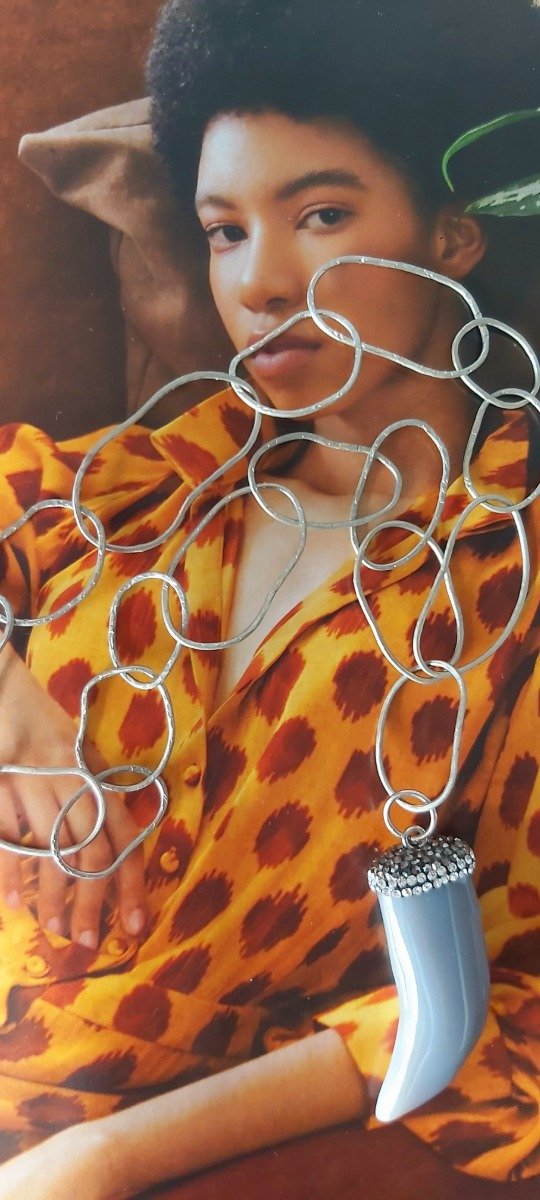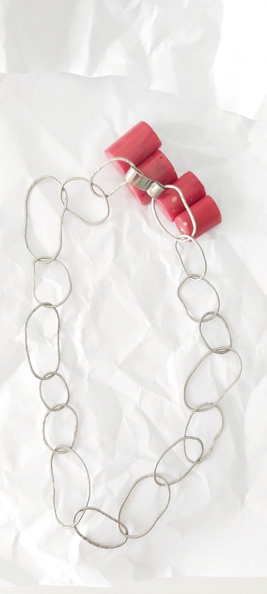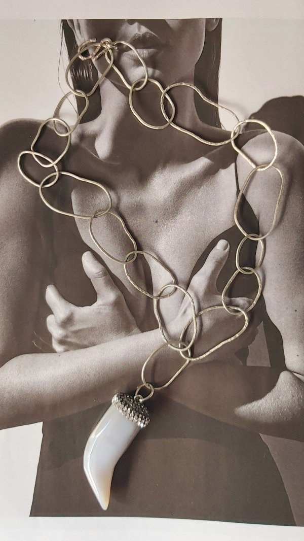 Collar con eslabones irregulares inspirados en las formas naturales del cuerpo.