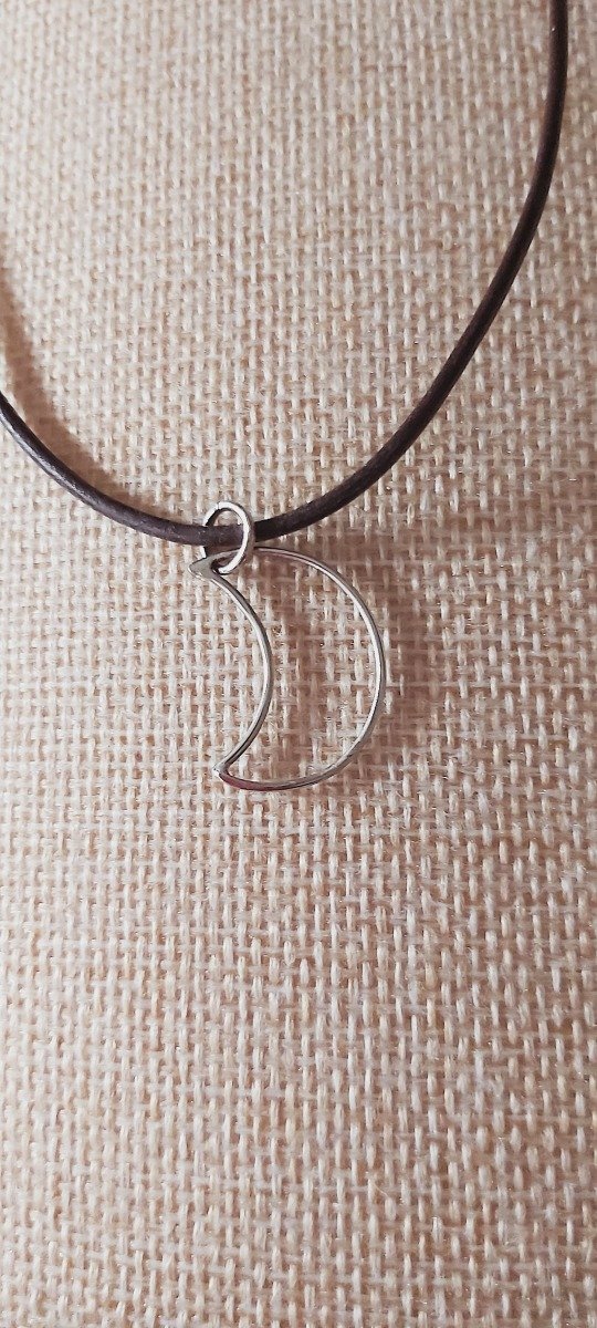 Collar de cuero con media luna de plata.