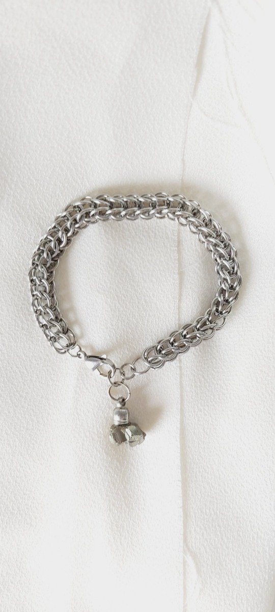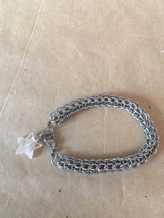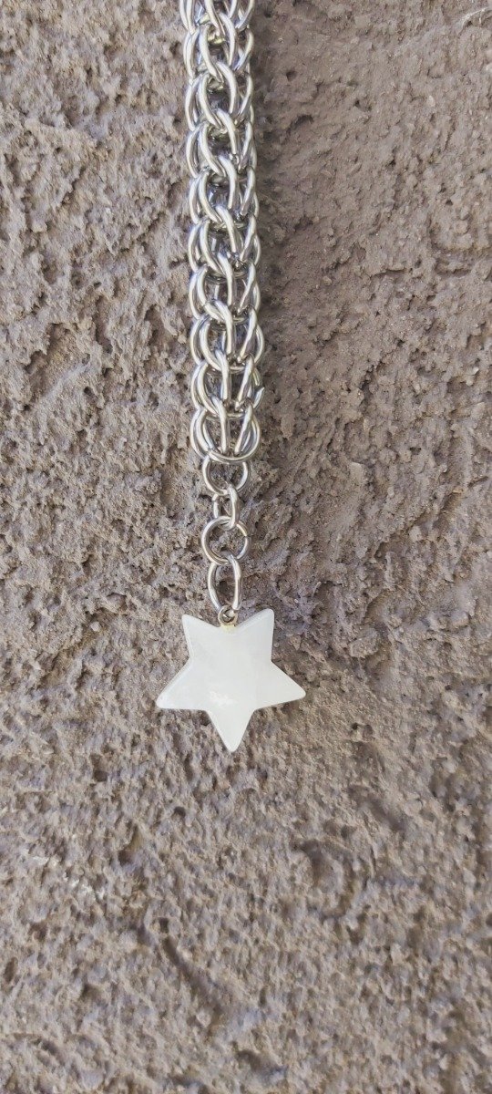 Pulsera con estrellita de cuarzo. Es una pulsera hecha a mano, el material es acero quirúrgico.